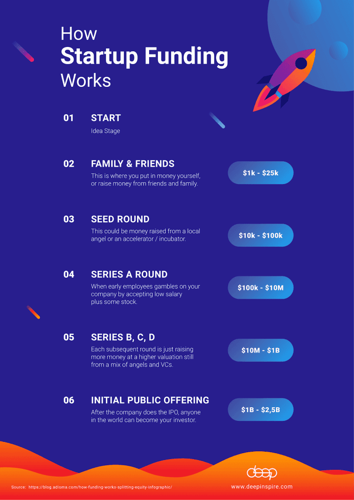 There are tons of information about how startup funding rounds work but it would be great to gather all rounds and hints in one place. We created an infographic with an overview of the basic funding rounds.